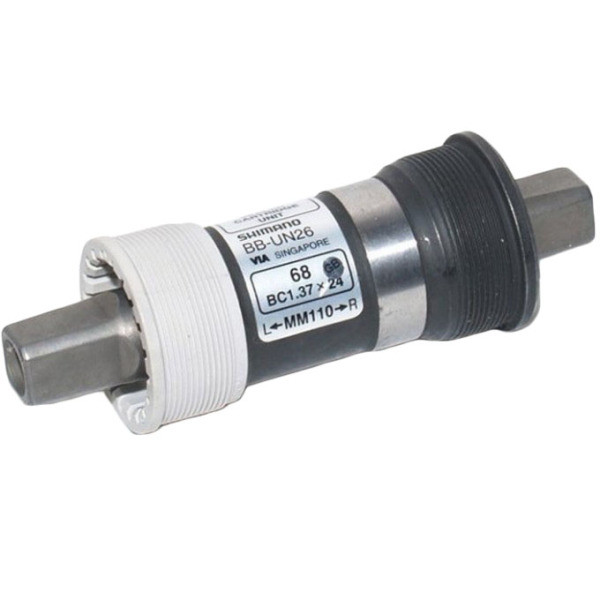 Каретка Shimano UN26, 68/110 мм, без болтов - это не дорогая, но в тоже время надежная и качественная каретка от японского производителя велосипедных компонентов из серии Tourney. Конструкция каретки имеет классическую квадратную ось и позволяет эффективно зафиксировать шатуны на ней. Внутри каретка имеет два промышленных подшипника с повышенной защитой от воды и грязи не требующих обслуживания. Shimano UN26 отлично подойдет как для горных, городских так и для шоссейных велосипедов начального и любительского уровня. Длина оси составляет 110 мм, а посадочное место в кареточный стакан рамы 68 мм. Важно: каретка не комплектуется болтами для фиксации шатунов на ней.
